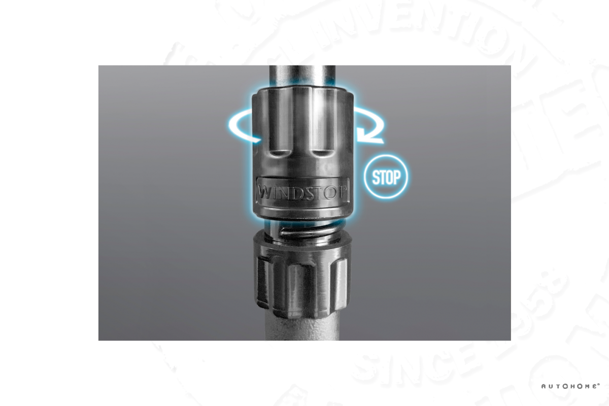 Shells open automatically using 2 gas struts, made by Suspa in Germany. Fitted with Windstops struts may be locked into position, making for greater stability in strong winds.