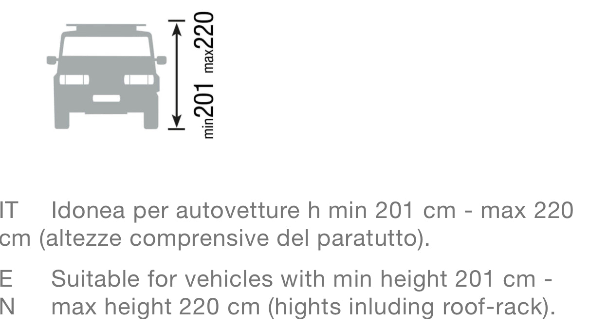 This will fit a car with rack that is 201 to 220cm from the ground